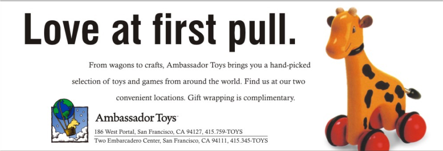 Whether your product is exclusive to San Francisco or distributed across the world, we would love to hear from you about your brand and share ideas on how advertising can help achieve your company's business objectives.